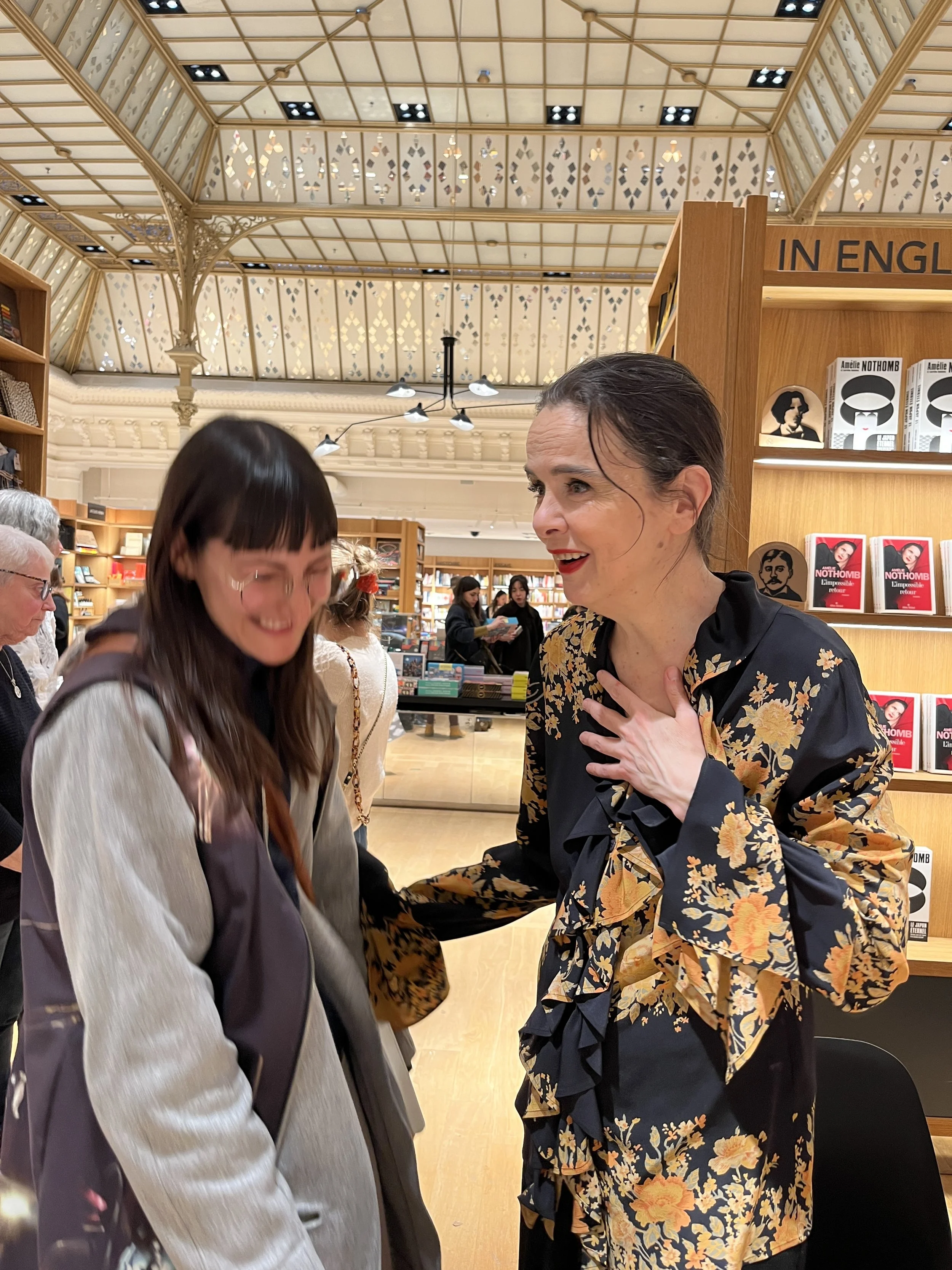 “Bonjour c’est un message pour Sonia Hamza de la part d’Amélie Nothomb. Nous nous sommes rencontrées hier au BHV, vous m’avez remis un extrait de votre travail. Je l’ai lu cette nuit. C’est très très beau. Vraiment félicitations. Nous parlons du même monde, Tôkyô... et votre Tôkyô a beaucoup d’intersections avec le mien... vos photos de Tôkyô sont magnifiques également. Ecoutez, félicitations... ce que vous m’avez envoyé de votre travail m’a profondément séduite. Je vous souhaite une excellente continuation... je vous remercie pour tout. C’était donc Amélie Nothomb pour Sonia Hamza.”