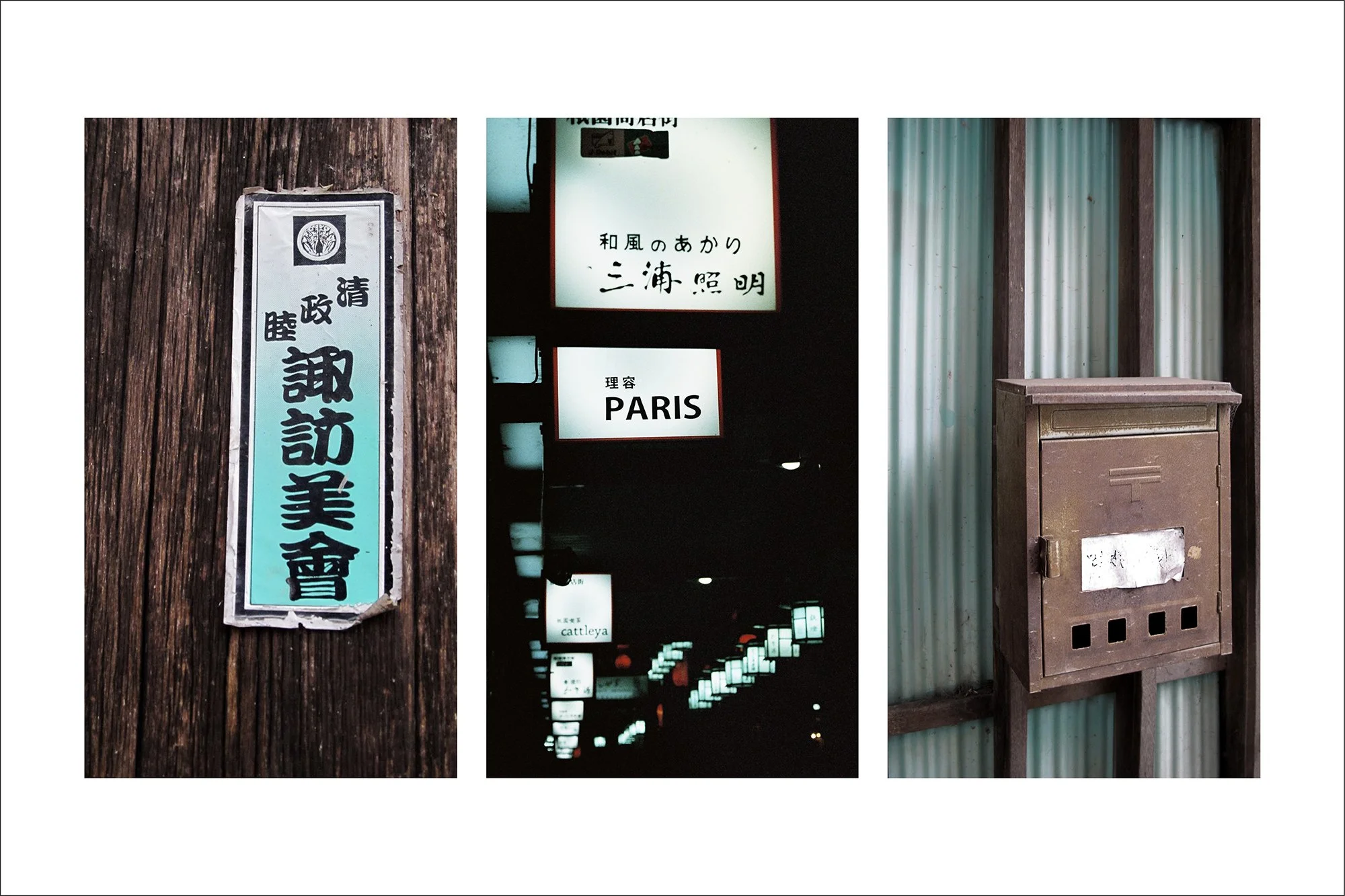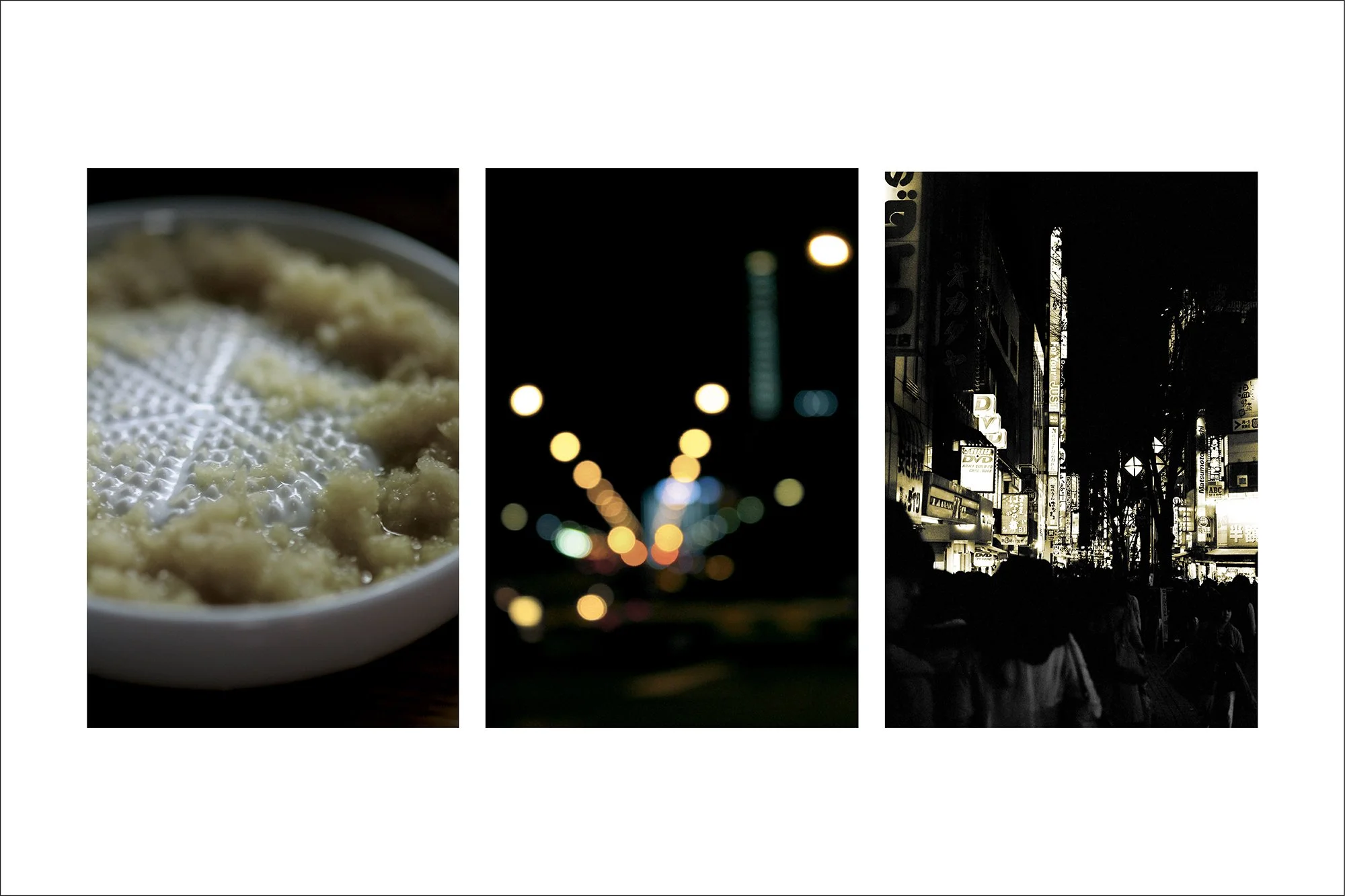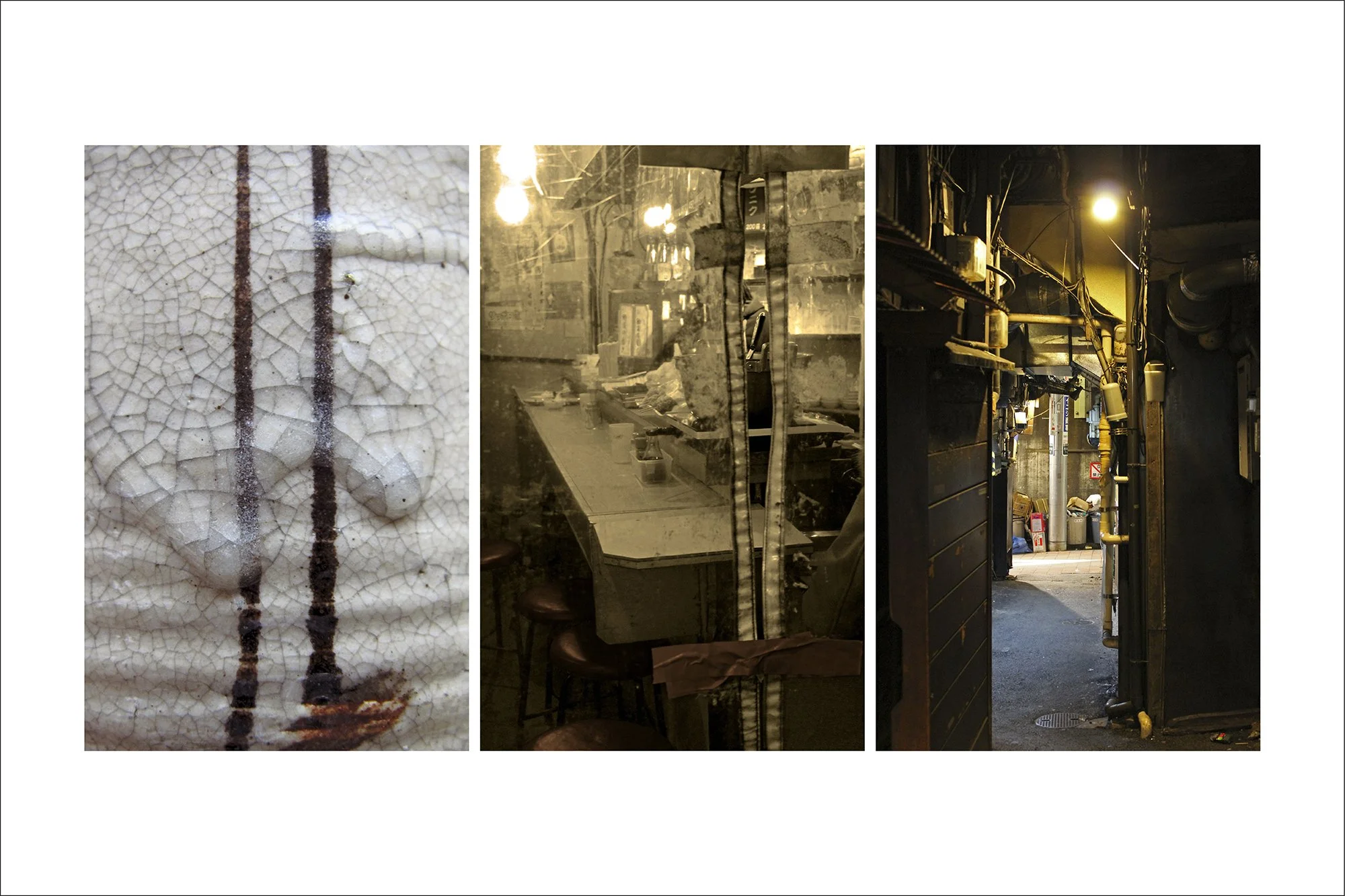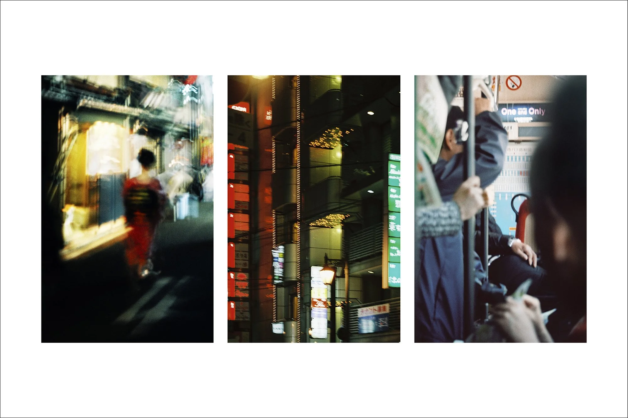 Réalisée entre avril et décembre 2012, cette série rend hommage à un Japon tout en contrastes, où tradition et modernité cohabitent avec une grâce souvent déconcertante. À travers des triptyques photographiques, j’ai souhaité capturer des fragments de quotidien japonais, tels que je les ai perçus en tant qu’étrangère, entre fascination, émerveillement et parfois stéréotypes.