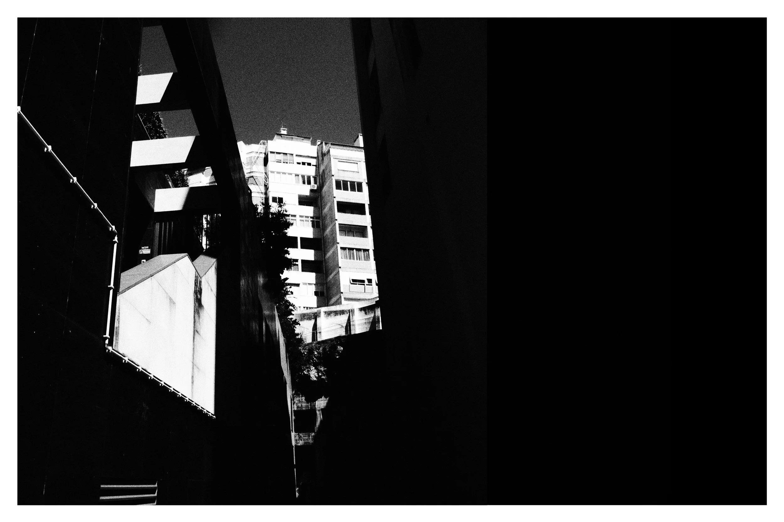 J’y découvre une architecture des années 60, aux lignes modernes et fonctionnelles, faite de verre, de béton, d'angles nets et de surfaces réfléchissantes, bien loin de l'image pastel et nostalgique généralement associée à Lisbonne. Mon séjour coïncide avec les festivités de la Saint-Antoine dont la vibration humaine et émotionnelle provoquée par la ferveur religieuse et l'allégresse populaire contraste de manière saisissante avec l'ordre graphique de l'urbanisme moderniste. Ce paradoxe devient la matière même de mon travail.